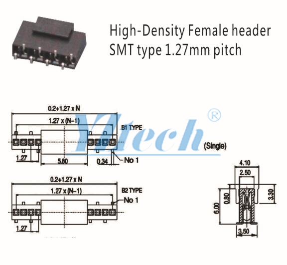 排母1.27SMD/1*XP H:6.0 O型 TYPE1/2 PIN位:1*2P-1*50P