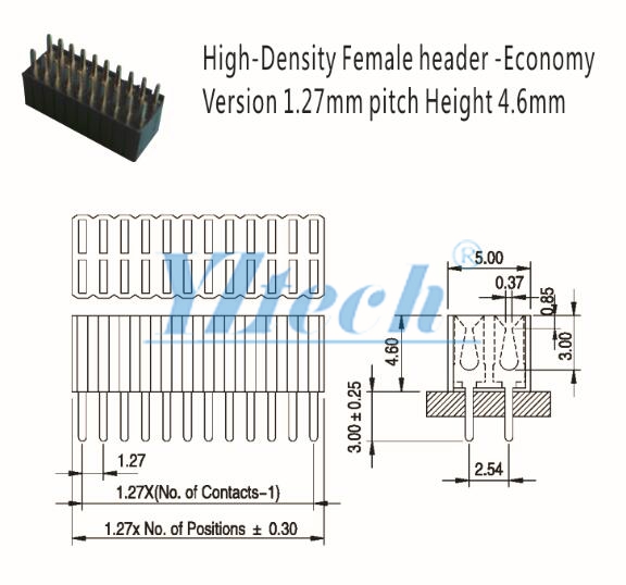 排母1.27/2*XP H:4.6/W:5.0 Y型 180度 PC2.4/PC2.8 PIN位:2*2P-2*50P