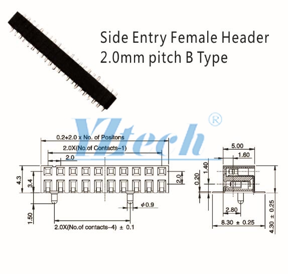 排母2.0双排双侧插贴片 H:4.3/W:5.0 带内柱 PIN位:2*3P-2*40P