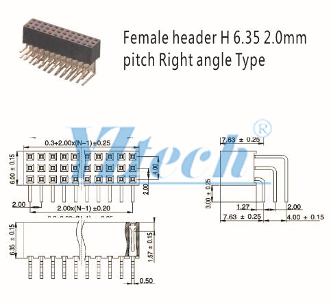 排母2.0/3*XP H:6.35 Y型 90度DIP PIN位:3*3P-3*40P