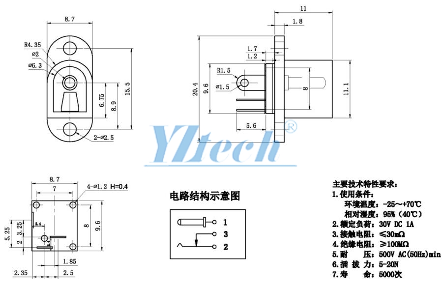 Contact resistance:≦30mΩ;