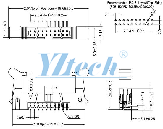 牛角2.0/6P-100P 90度 长耳扣 PC3.1 PA6T
