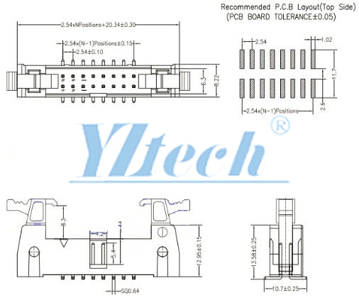 牛角2.54SMD/6P-64P H:12.95 贴片宽度10.7 带柱 带耳扣 黑色