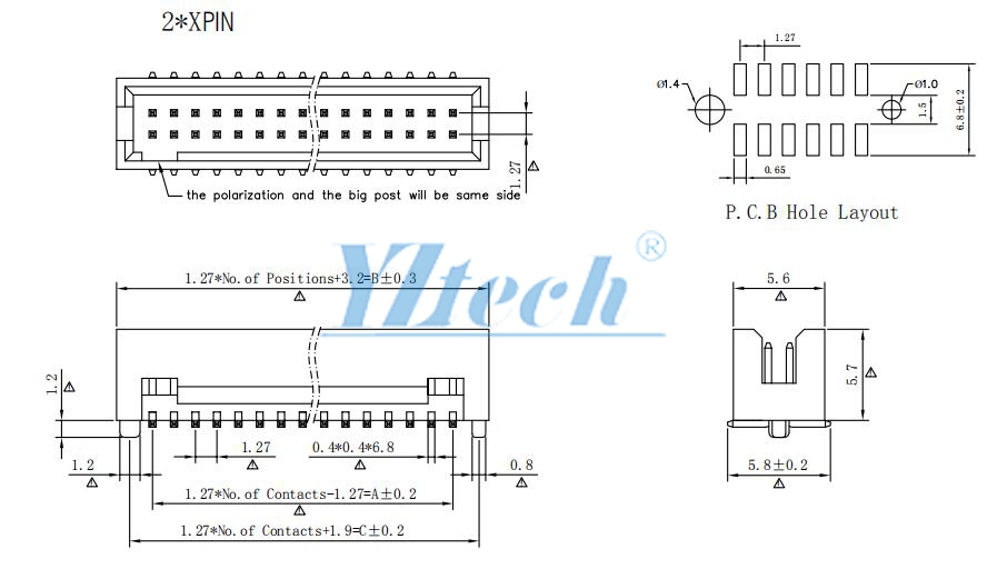 简牛1.27*1.27SMD/2*XP H:5.7 SMD宽5.8 可带柱/不带柱 PIN位(2*3P-2*50P)