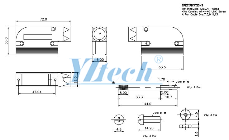 D-SUB 鋅合金铁壳 A-TYPE 25PIN 90° 出线9mm 加长螺丝 单包